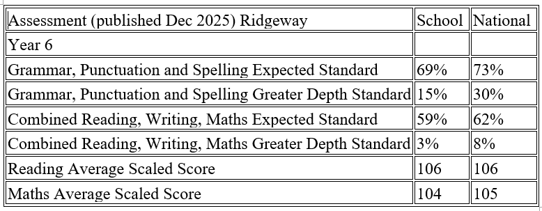 If you would like to see the performance tables for Ridgeway Academy, please visit the Department of Education (DfE) website by clicking here. Also see attached.